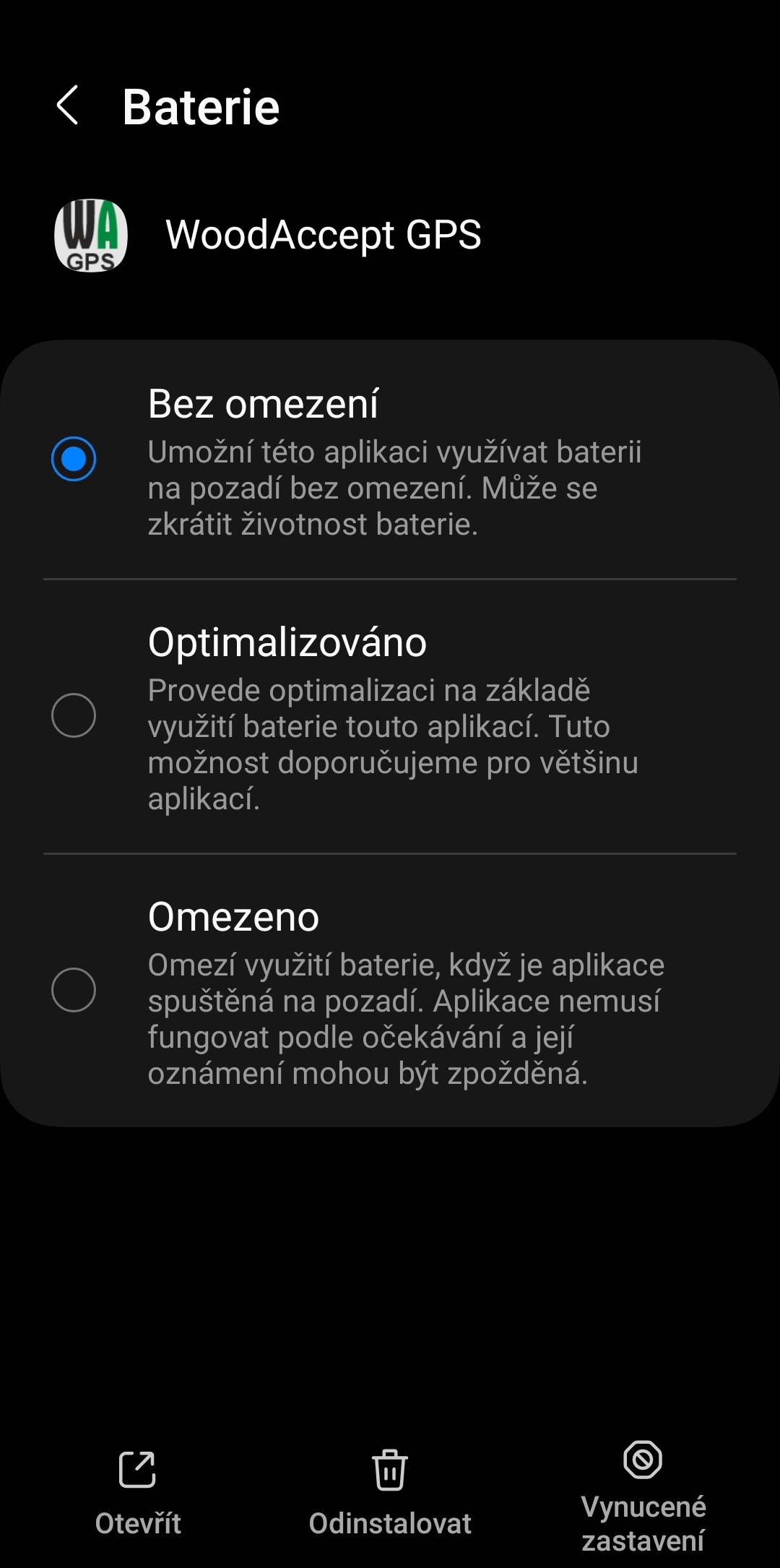 Mobilní aplikace WoodAccept GPS pro dopravce